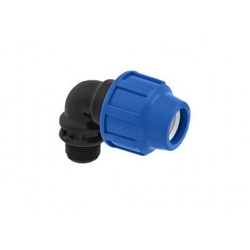 KPE könyök K 90x4 col külső menetes idom. (DUPLÁN SZEREPLŐ TÉTEL) 90 mm KPE cső 90 fokos iránytöréssel és 4 col külső menetes csatlakozással.
