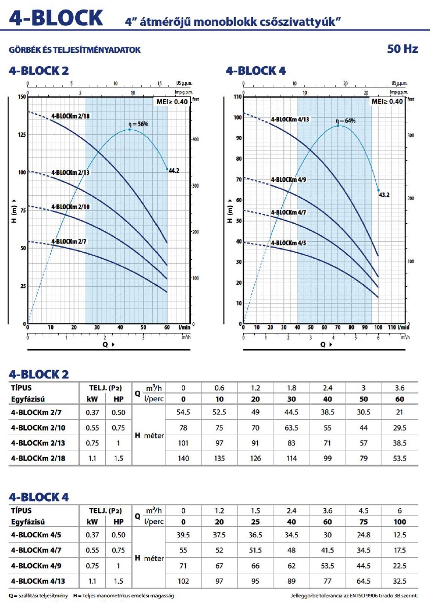 A „Block” elnevezés a motor és a szivattyú blokkszerkezetére utal, míg az "m" jelölés az egyfázisú kivitelt jelenti. A szivattyúk beépített kondenzátorral és hővédelemmel rendelkeznek, így nincs szükség külön vezérlődobozra a felszínen, ami tovább egyszerűsíti a telepítést.