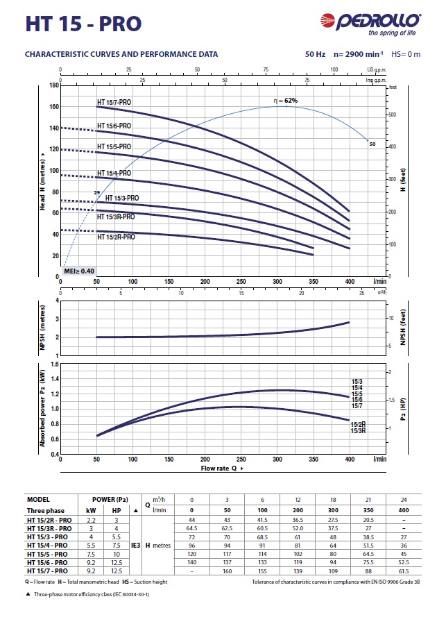 Műszaki adatok – PEDROLLO HT-PRO Többlépcsős Centrifugális Szivattyú