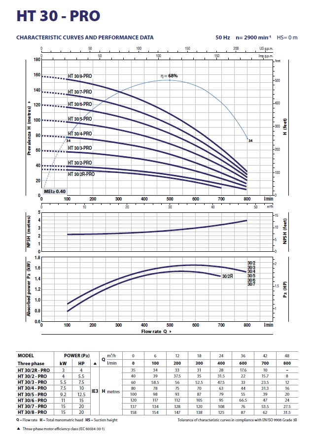 | Típus | HT-PRO | Függőleges, többlépcsős centrifugálszivattyú | |