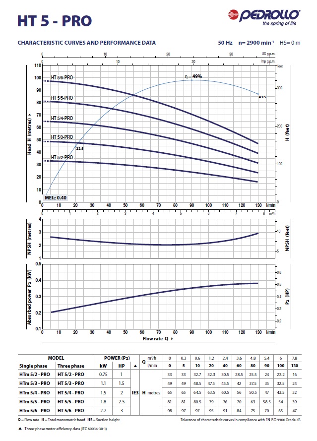 Műszaki adatok – PEDROLLO HT-PRO Többlépcsős Centrifugális Szivattyú