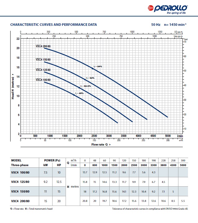 Nagy Átfolyás és Teljesítmény: A VXC4 150/80 modell nagy teljesítményű, háromfázisú motorral (400/690V) rendelkezik, amely hatalmas folyadékszállítást tesz lehetővé még nagy emelőmagasságok mellett is. A szivattyú ideális választás nagyméretű projektekhez, ahol gyors és hatékony vízelvezetésre van szükség.