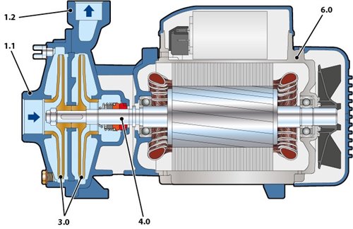 Tartós Anyaghasználat: A szivattyúház masszív öntöttvasból készül, a járókerék pedig rozsdamentes acélból (AISI 304). Ez a kombináció garantálja a korrózióállóságot és a megbízhatóságot, még agresszívabb körülmények között is. A tengelytömítés szilícium-karbid/grafit, ami kiváló kopásállóságot biztosít.