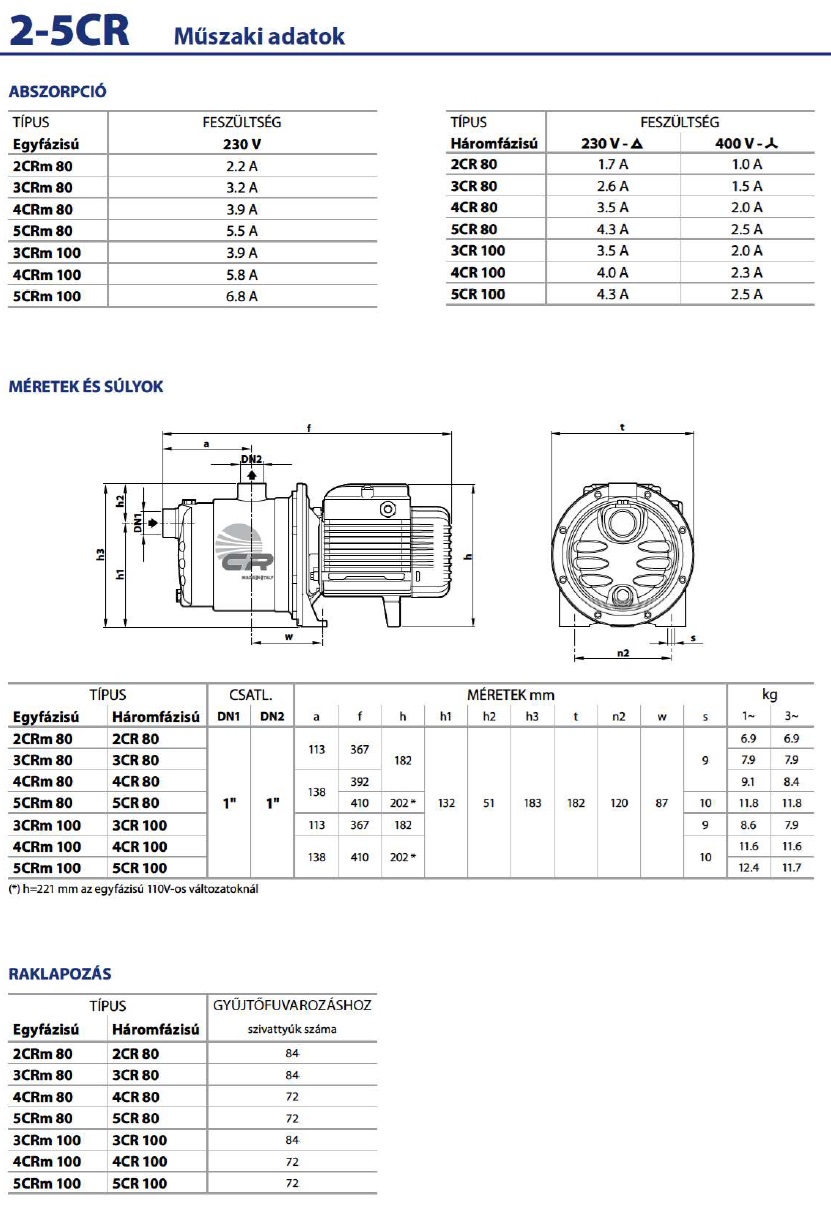 A "CR2", "CR3", "CR4" jelölések a szivattyú fokozatainak (járókerekeinek) számát jelölik, ami közvetlenül arányos a szivattyú által generált nyomással és emelőmagassággal. Minél több a fokozat, annál nagyobb nyomásra képes a szivattyú azonos térfogatáram mellett.