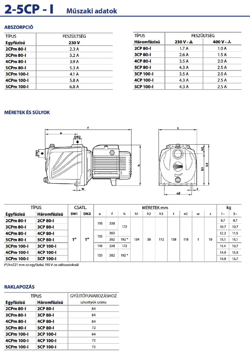 - 3CP, 4CP, 5CP: Növekvő számú járókerék, növekvő emelőmagasság és nyomás, komplexebb rendszerekhez.
