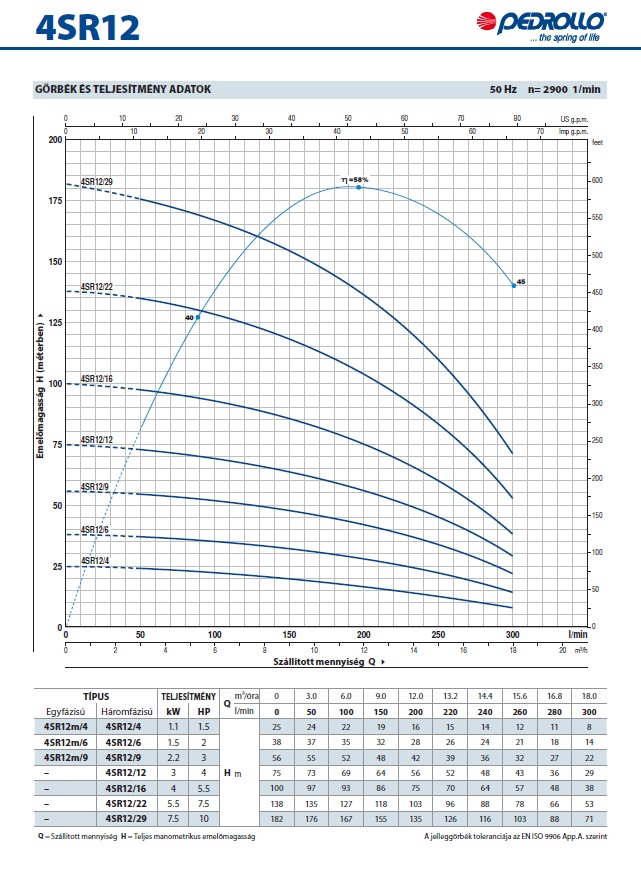 Motor teljesítmény: A szivattyúk 0,37 kW (0,5 LE) és 7,5 kW (10 LE) közötti teljesítményű motorokkal kaphatók.
