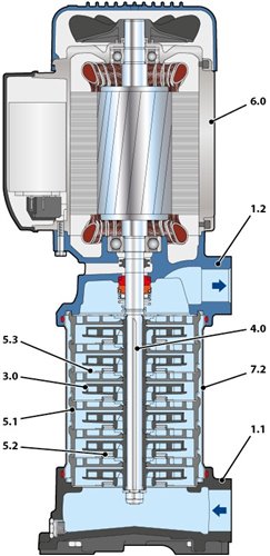 Függőleges, Többlépcsős Kialakítás: Ez a szivattyú függőleges, többlépcsős kivitelű, ami azt jelenti, hogy több járókerék dolgozik egymás után, lehetővé téve a nagy nyomás elérését anélkül, hogy a motor teljesítménye aránytalanul megnőne. Ez a kialakítás rendkívül hatékony, és ideális a magas emelőmagasságot igénylő feladatokhoz.