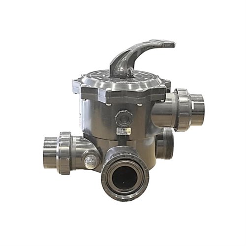 Peraqua 6-utas SIDE rögzítésű váltószelep 2 1/2col (D75) csatlakozással. Ipari és nagyméretű medencékhez tervezve, ahol a nagy átfolyás és a megbízhatóság kulcsfontosságú. Ellenáll a magas nyomásnak és a vegyszereknek.